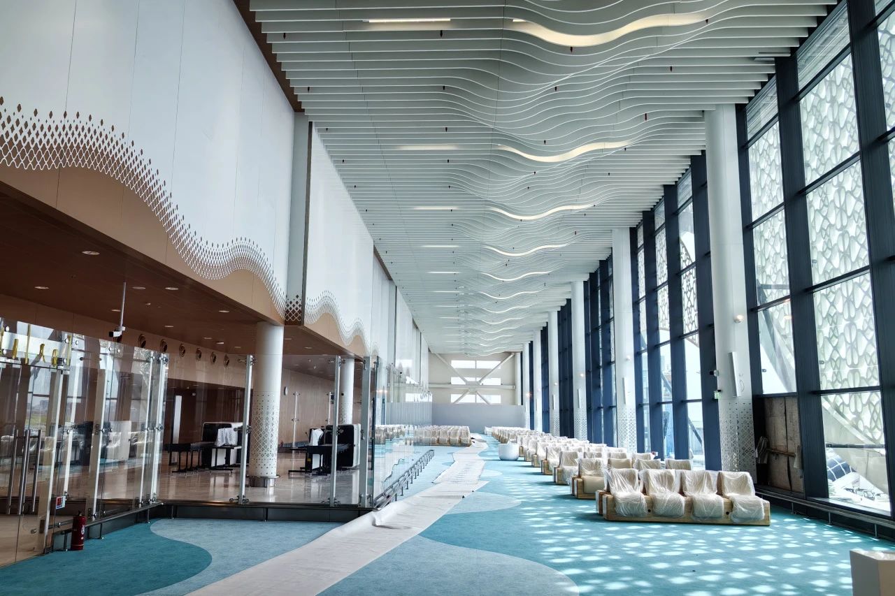 新航站樓毗鄰已建成通車的中馬友誼大橋,設計充分考慮馬爾代夫文化特色,將當地傳統元素與現代建筑風格相融合。新航站樓占地面積約3.7萬平方米,建筑面積約8萬平方米,共3層,屋面總高約21.7米,采用鋼筋混凝土與鋼結構相結合的形式。新航站樓內部設施先進,設有47個值機柜臺、6個自助服務亭、20個出境移民柜臺、6個登機口和12個空中橋梁,年旅客承載能力達700多萬人次,全面取代1981年啟用的原航站樓,實現了馬爾代夫機場基礎設施的全面升級。