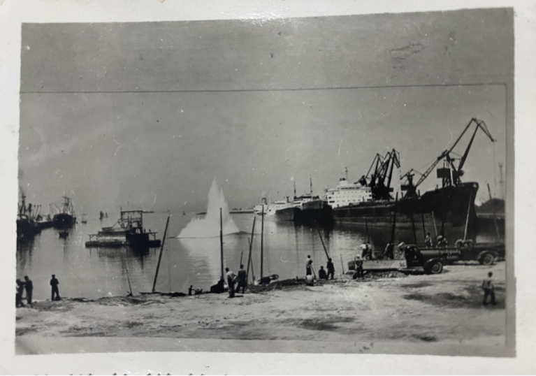 1974年廣航道局炸礁工作隊在青島港六號碼頭作業