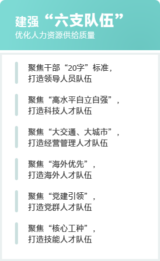 以提高現代企業經營管理水平為目標,聚焦“大交通、大城市”領域,培養造就一批具有敏銳商業洞察力、戰略執行能力、市場開拓精神和管理創新能力的高素質經營管理人才隊伍。