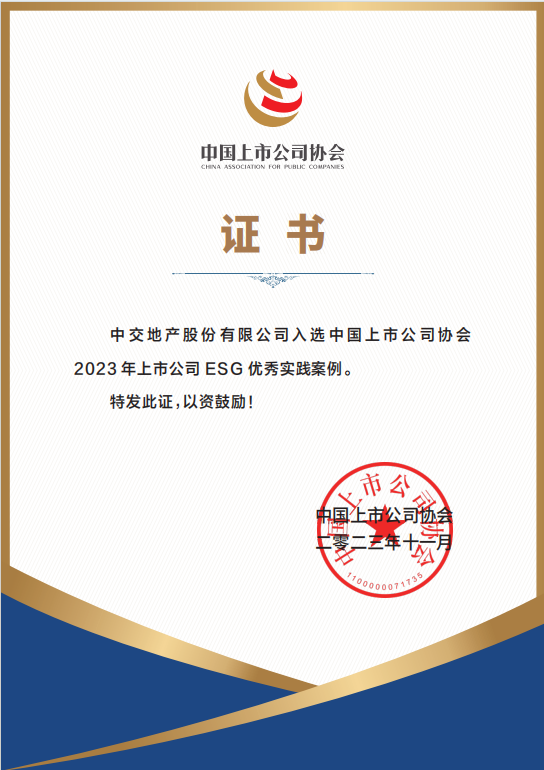 中交地產(chǎn)-上市公司ESG優(yōu)秀實(shí)踐案例證書(shū)