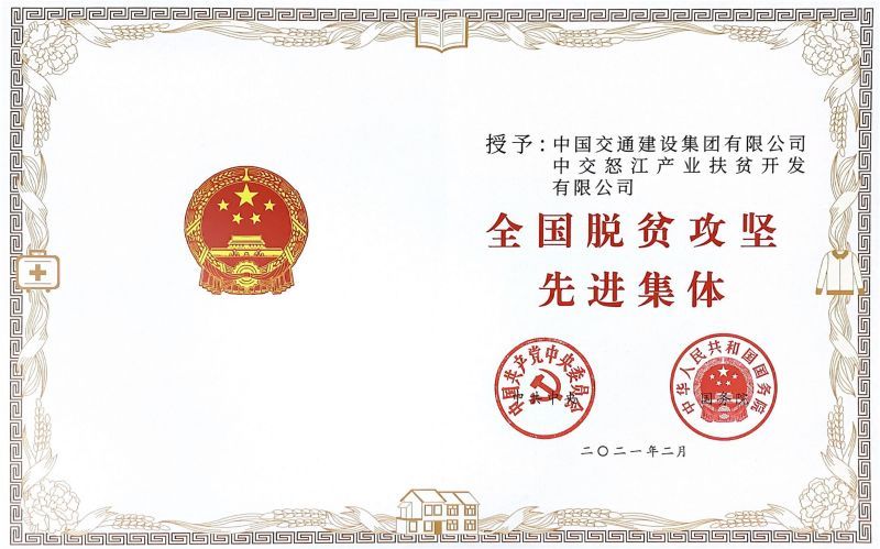 大會對全國脫貧攻堅先進個人、先進集體進行表彰,中國交通建設集團有限公司中交怒江產業扶貧開發有限公司榮獲全國脫貧攻堅先進集體。中交集團黨委書記、董事長、總經理王彤宙在現場參加大會。