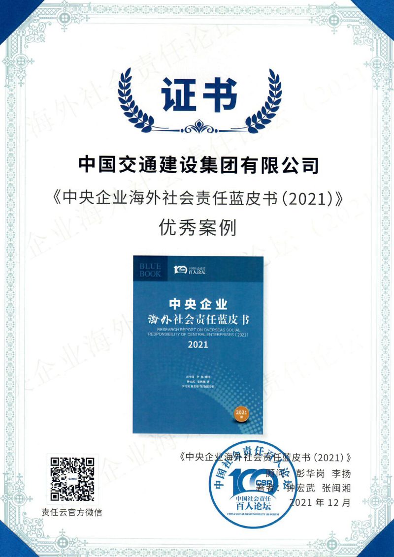 2021年12月23日,國(guó)務(wù)院國(guó)資委在京發(fā)布《中央企業(yè)海外社會(huì)責(zé)任藍(lán)皮書(shū)(2021)》,集中展現(xiàn)中央企業(yè)在高水平對(duì)外開(kāi)放新格局中的責(zé)任擔(dān)當(dāng)和實(shí)踐成果。公司申報(bào)的《筑牢鐵路運(yùn)營(yíng)安全網(wǎng) 暢通東非抗疫生命線(xiàn)——疫情背景下肯尼亞蒙內(nèi)鐵路安全運(yùn)營(yíng)實(shí)踐》案例收錄其中,并獲評(píng)優(yōu)秀案例。