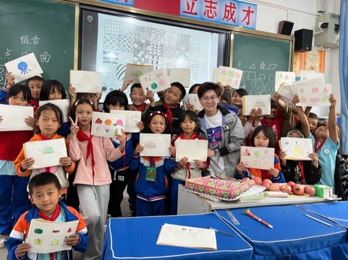 在“中交助夢(mèng)·教育提升”支教活動(dòng)中,一名志愿者來(lái)帶云南福貢為一所小學(xué)孩子們教授美術(shù)課,通過(guò)一系列生動(dòng)有趣、富有啟發(fā)性的課程活動(dòng)向?qū)W生展示一個(gè)豐富多彩的藝術(shù)世界,挖掘他們的想象力和創(chuàng)造力,