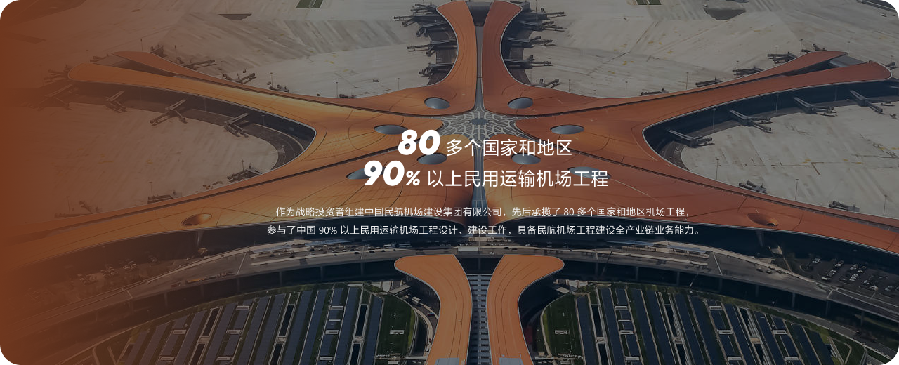 作為戰(zhàn)略投資者組建中國民航機場建設集團有限公司,先后承攬了 80 多個國家和地區(qū)機場工程,參與了中國 90% 以上民用運輸機場工程設計、建設工作,具備民航機場工程建設全產(chǎn)業(yè)鏈業(yè)務能力。