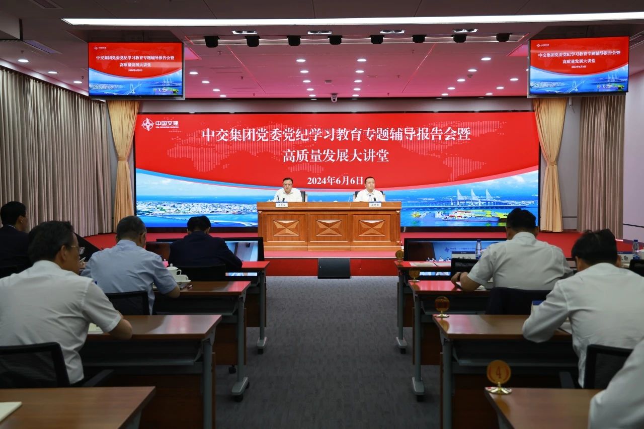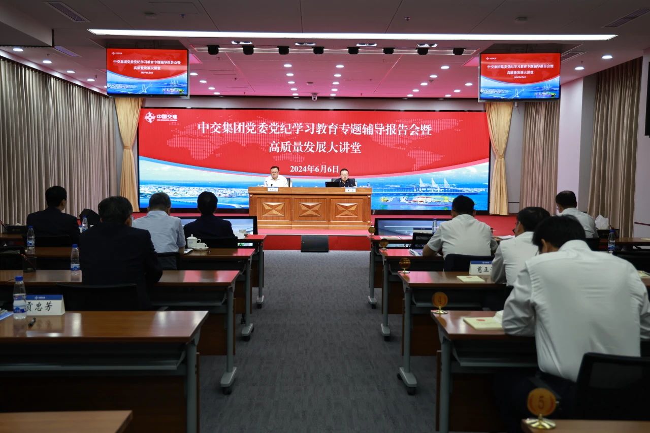 6月6日,中交集團黨委舉辦黨紀學習教育專題輔導報告會暨“高質量發展”大講堂。中交集團黨委書記、董事長王彤宙出席會議并講話,強調要以習近平新時代中國特色社會主義思想為指導,原原本本學習新修訂的《中國共產黨紀律處分條例》和新公司法,持續推動公司黨紀學習教育走深走實,切實把學習成效轉化為加快建設“三型”世界一流企業的生動實踐。中交集團黨委常委、紀委書記敏珠勒和全國人大常委會法制工作委員會立法規劃室主任王翔分別圍繞學習貫徹《中國共產黨紀律處分條例》和新公司法作輔導報告。公司黨委中心組成員參加集體學習。