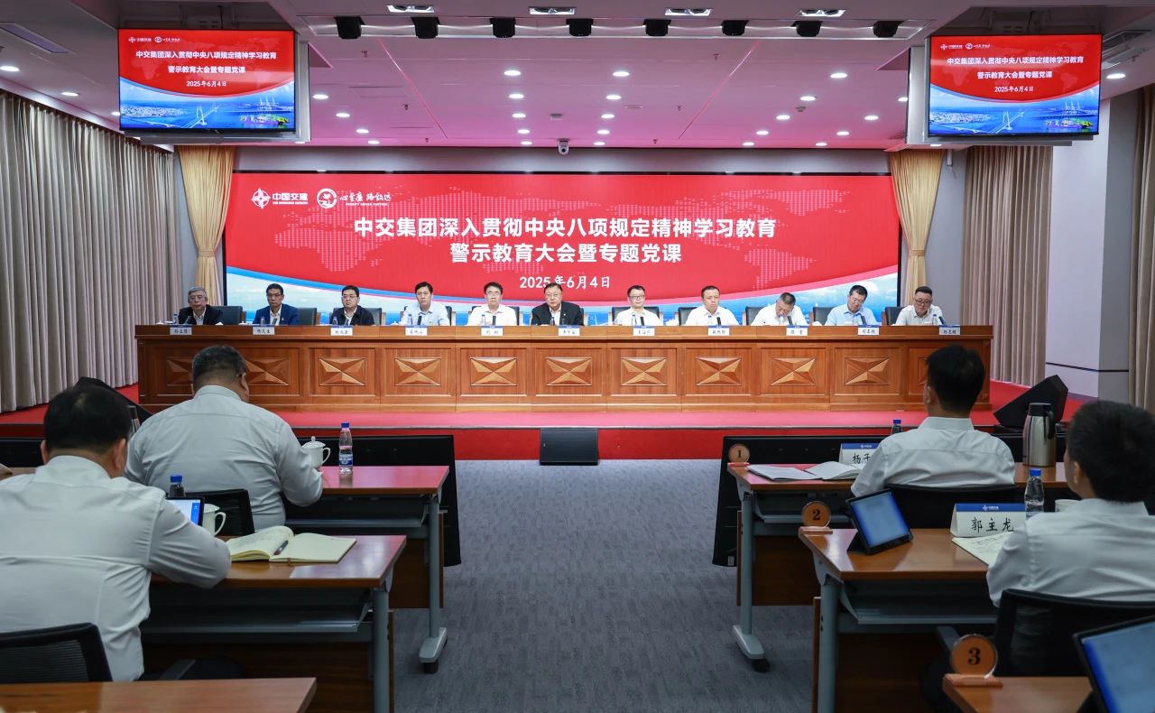 6月4日,中交集團黨委召開深入貫徹中央八項規定精神學習教育警示教育大會暨專題黨課。會議傳達學習習近平總書記關于深入貫徹中央八項規定精神學習教育的重要指示批示、宣貫公司黨委落實中央八項規定及其實施細則精神相關制度、通報公司違反中央八項規定精神警示教育案例。公司黨委書記、董事長王彤宙主持會議并以“鍥而不舍落實中央八項規定精神 以作風建設新成效推動高質量發展新突破”為題講授專題黨課,公司領導班子成員出席會議,國務院國資委黨委第二督導組成員楊子林、戴巍到會督導指導。