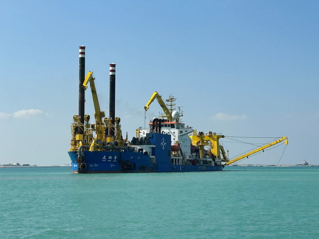 春節(jié)期間,由中國港灣承建、天航局實(shí)施的阿聯(lián)酋阿布扎比胡達(dá)里亞特島疏浚吹填工程進(jìn)入生產(chǎn)創(chuàng)效全面攻堅(jiān)階段,天航局項(xiàng)目團(tuán)隊(duì)圍繞“天鯤號(hào)”高產(chǎn)創(chuàng)效積極開展工藝研究,根據(jù)土質(zhì)變化對(duì)絞刀選型及防石工藝進(jìn)行優(yōu)化,并立足現(xiàn)有資源進(jìn)行快速閘板閥及管線快速接頭的改造。同時(shí),項(xiàng)目青年突擊隊(duì)晝夜奮戰(zhàn)組裝管線近3000米,為“天麒號(hào)”順利進(jìn)場(chǎng)及“天鯤號(hào)”施工高產(chǎn)保駕護(hù)航。