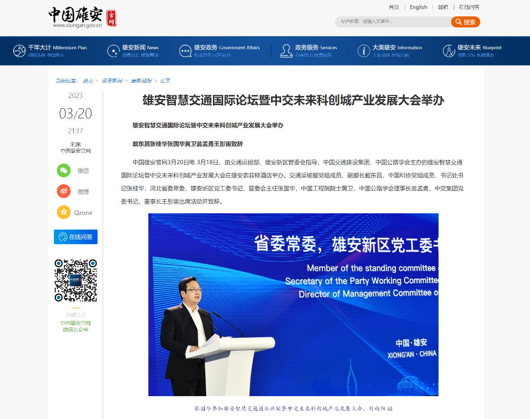 雄安智慧交通國際論壇暨中交未來科創(chuàng)城產(chǎn)業(yè)發(fā)展大會舉辦