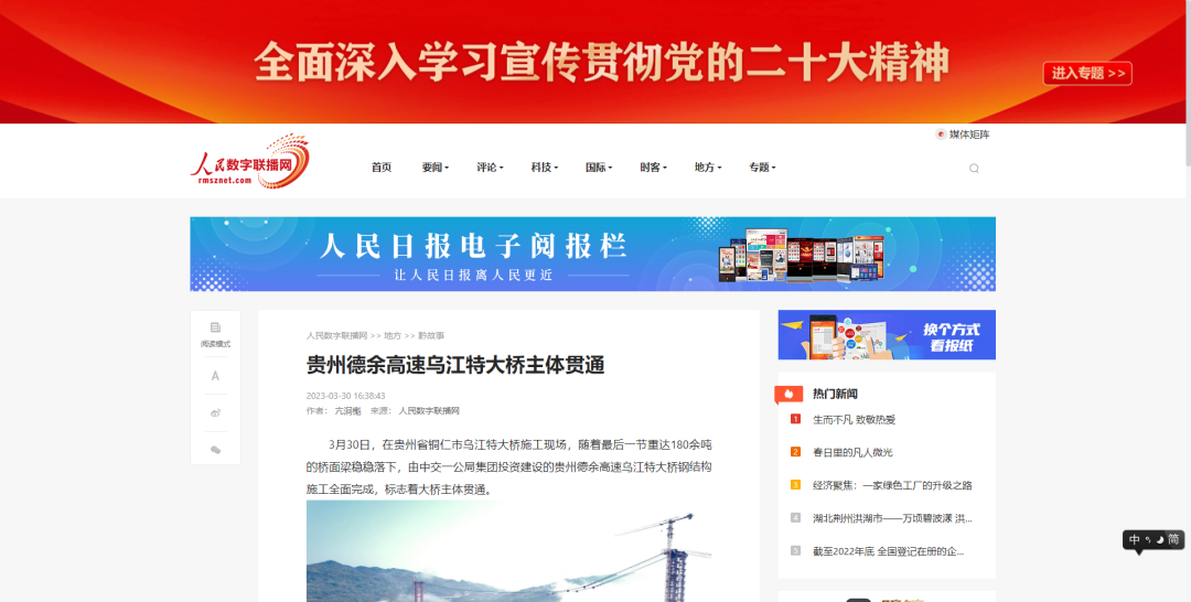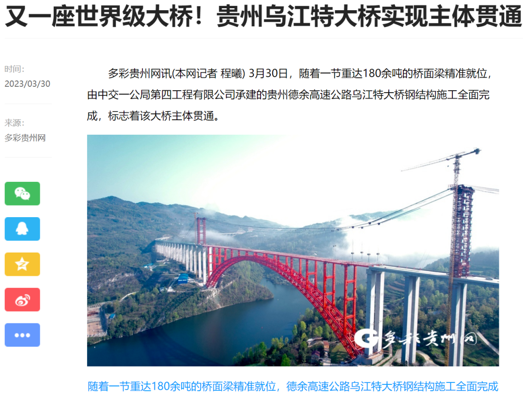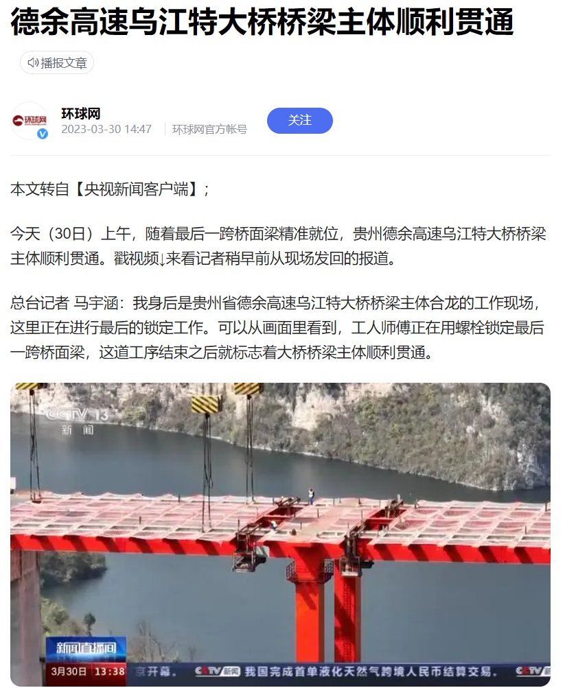 貫通直播共吸引200余萬網友圍觀互動,20余家主流媒體轉載烏江特大橋主體貫通消息,中交“出品”的超級工程再次刷屏全網。