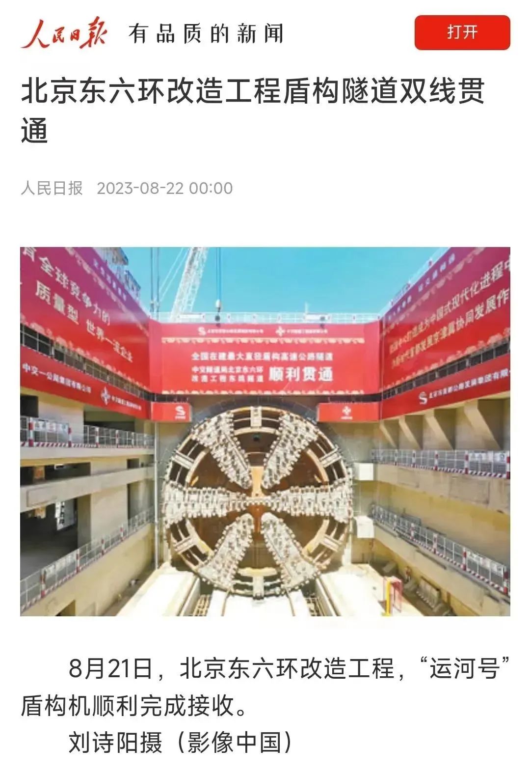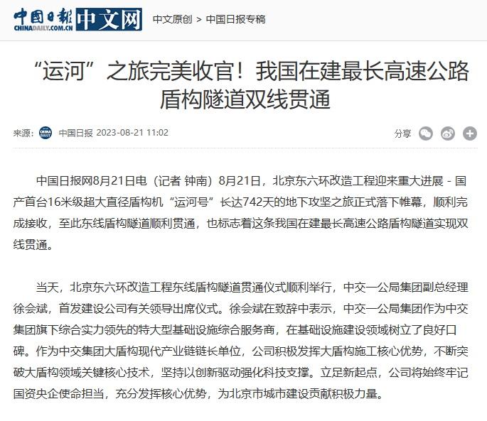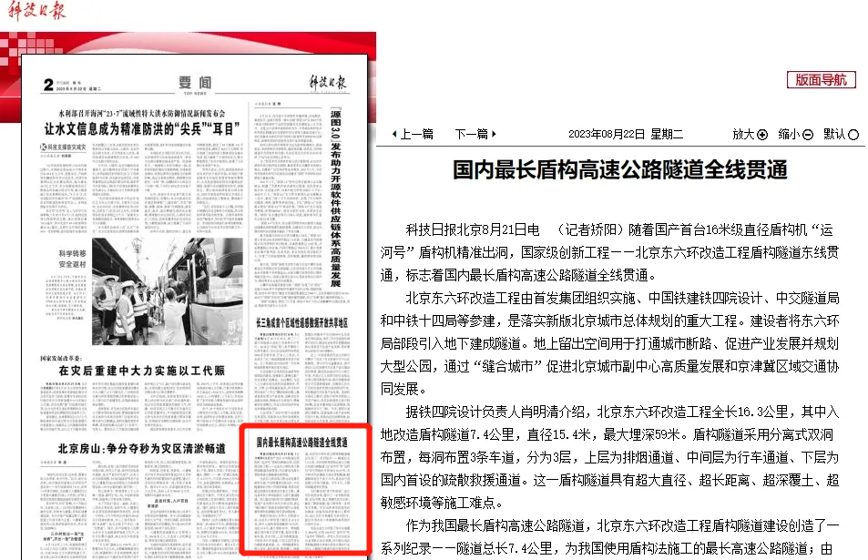 北京日報頭版圖片新聞報道北京東六環改造工程雙線貫通。北京日報多個媒體平臺同時報道北京東六環改造工程雙線貫通,累計瀏覽量超20萬次。