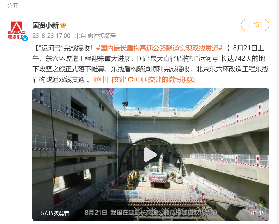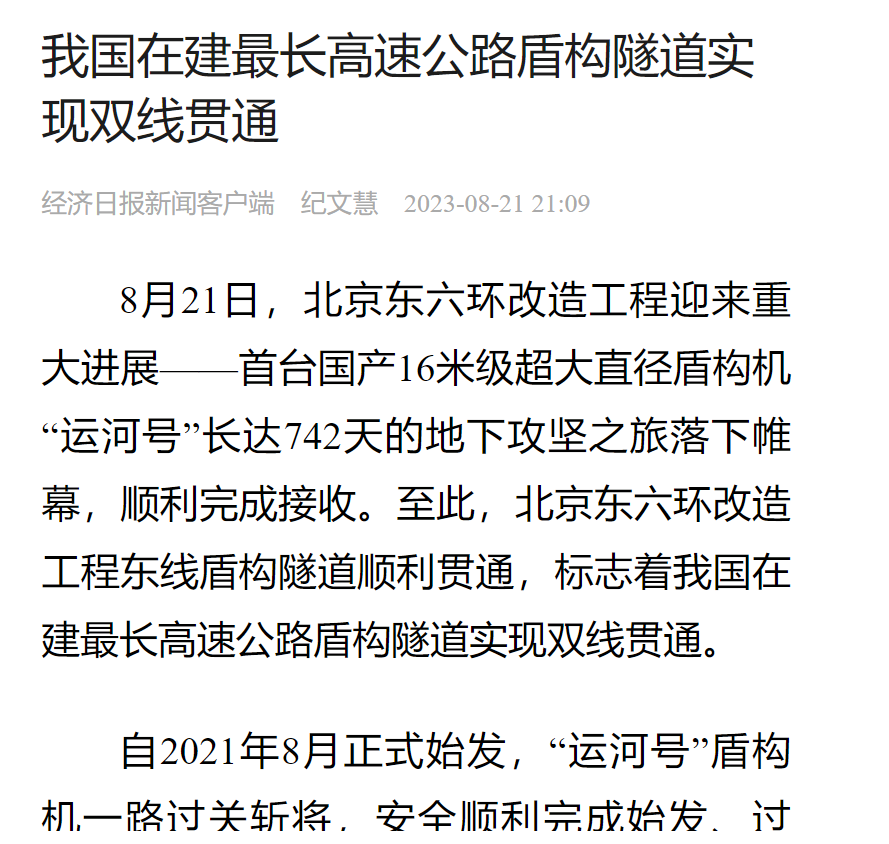 對我國在建最長盾構高速公路隧道順利貫通