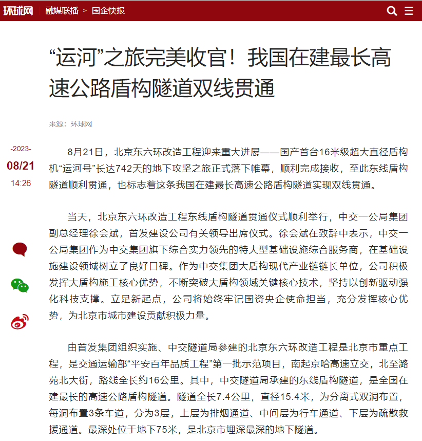 新華社多個媒體平臺報道北京東六環改造工程雙線貫通,累計瀏覽量超70萬次。