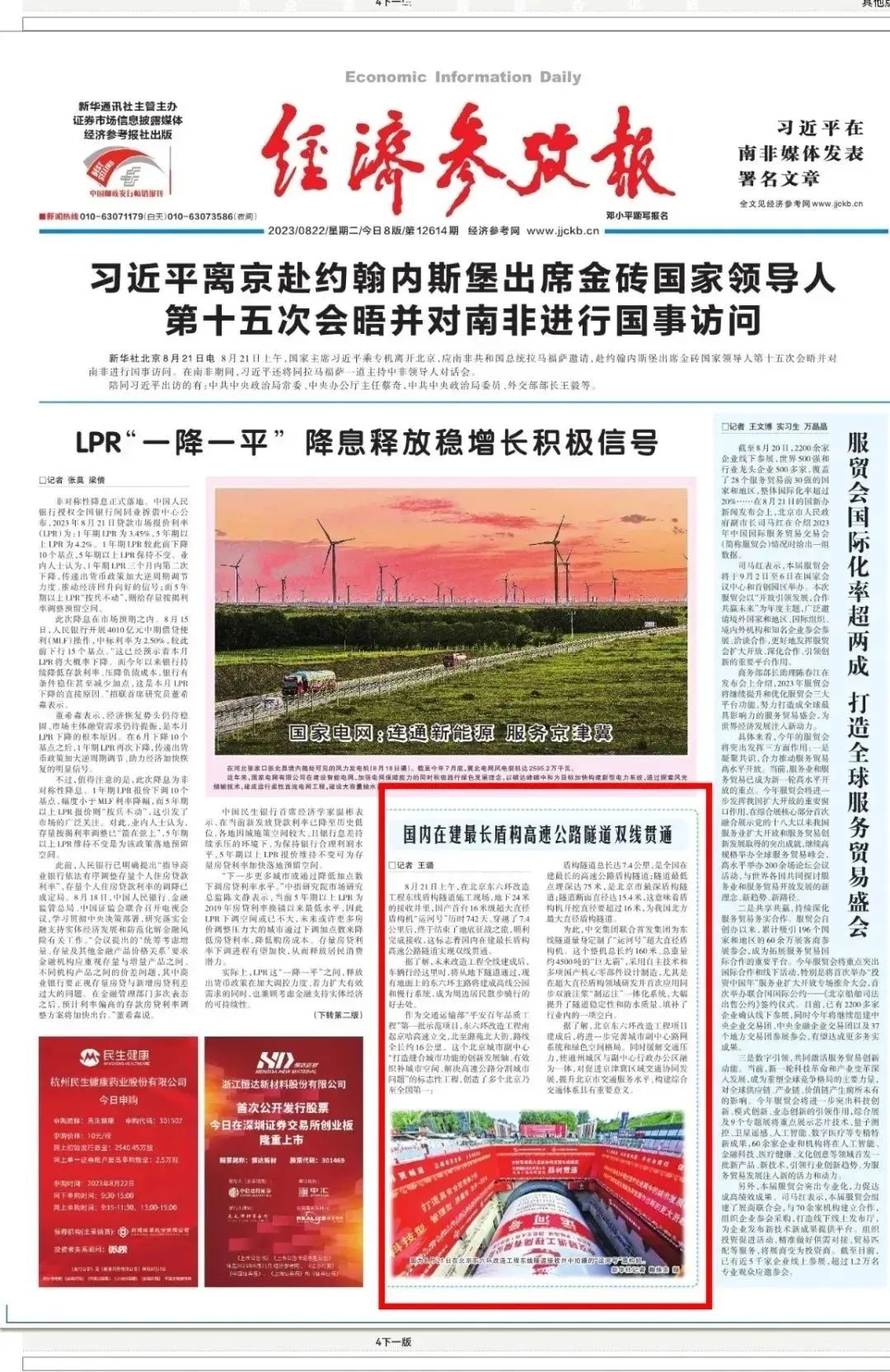 經濟參考報頭版新聞報道北京東六環改造工程雙線貫通。