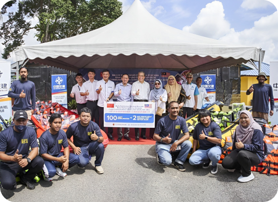 馬來西亞發(fā)生洪澇災害,馬東鐵項目各分區(qū)第一時間調配人手和設備協(xié)助救援,向受災區(qū)民眾贈送生活必需品等物資,并積極參與災后重建。