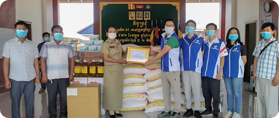 金港高速公路項目“藍馬甲”志愿者深入當?shù)剜l(xiāng)鎮(zhèn)社區(qū),為民眾捐贈大米、食用油等生活物資。