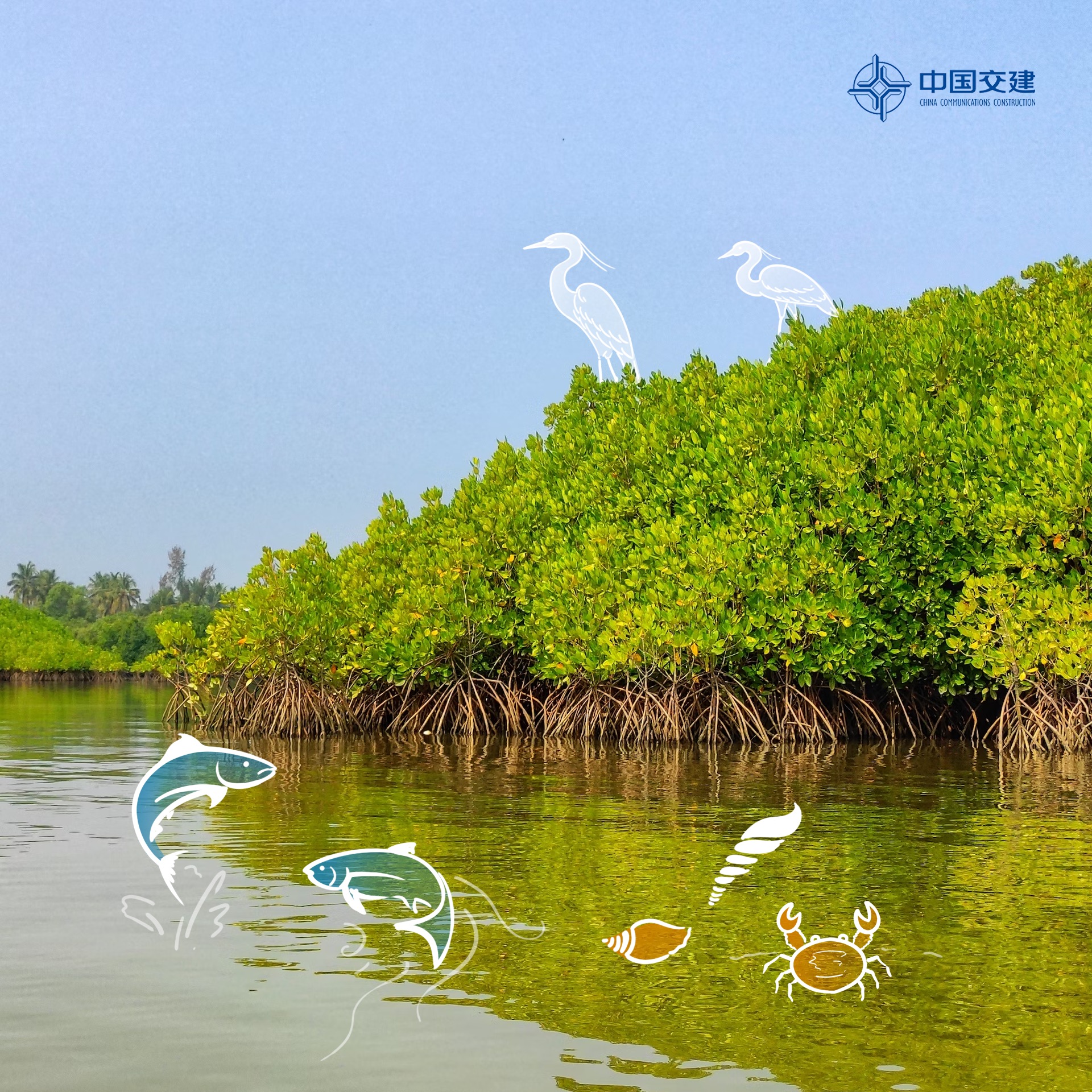 在越南海上風(fēng)電項(xiàng)目施工海岸線兩側(cè)以及交通船碼頭2公里通道走廊,中交項(xiàng)目部累計(jì)栽植了近3000棵紅樹樹苗,兼顧生態(tài)效益與景觀效果。
