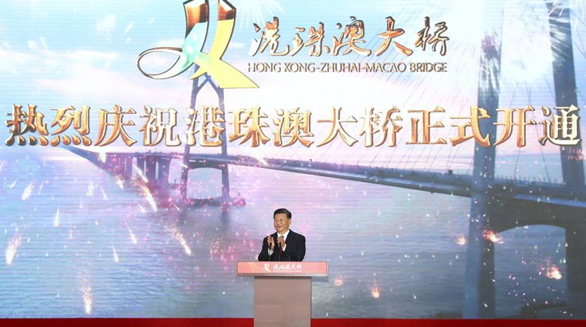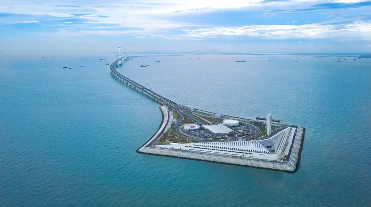 港珠澳大橋全長55公里,是世界上最長的跨海大橋,同時(shí)擁有世界最長的公路沉管隧道和唯一的深埋沉管隧道。該橋被英國《衛(wèi)報(bào)》評(píng)為“新世界七大奇跡”。港珠澳大橋的建成將粵港澳三地納入“一小時(shí)生活圈”,三地人民“你中有我,我中有你”,形成一家親,成為一家人,有力推動(dòng)了粵港澳大灣區(qū)共同繁榮,在中華民族復(fù)興史上留下濃墨重彩的篇章。